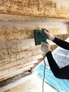 サビや古い塗膜をヤスリなどで削り落とし、さらに表面に細かい傷をつけることで、新しい塗料がしっかり密着します。